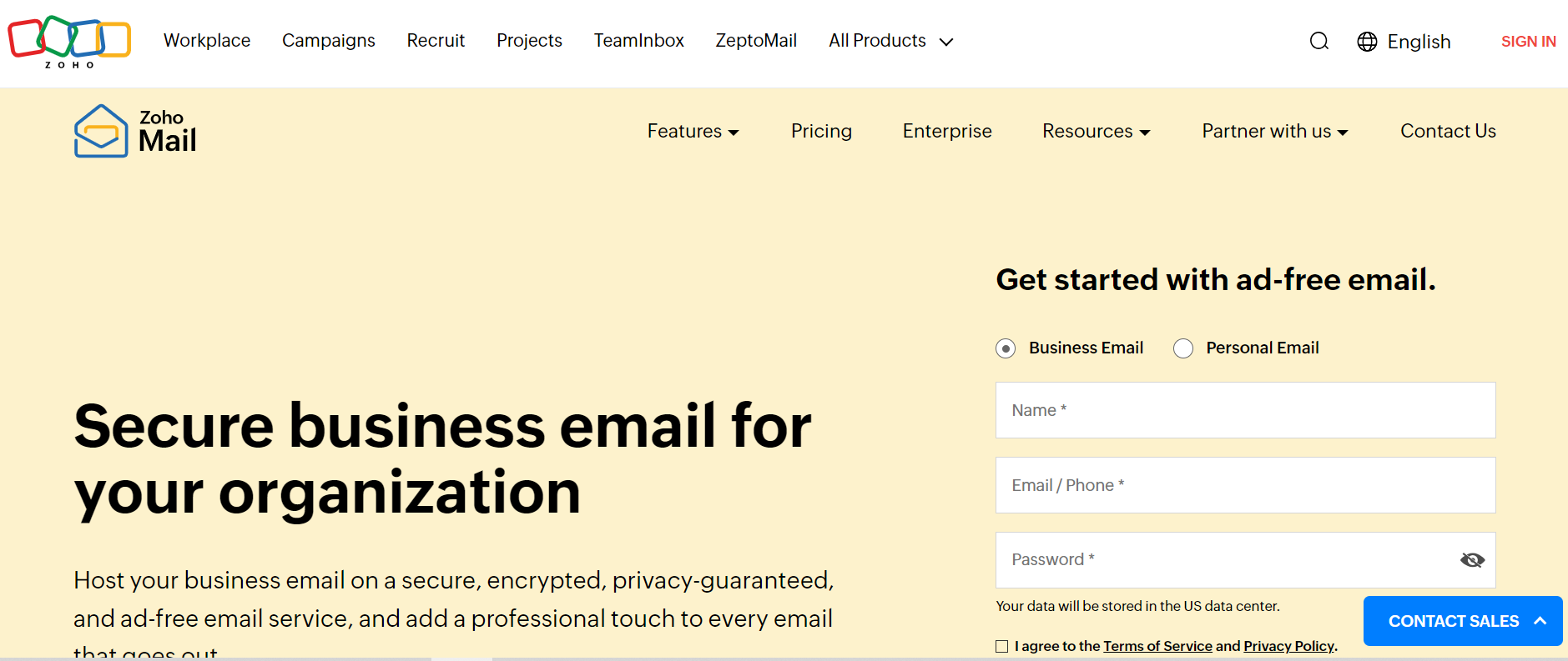 - Go to the Zoho Mail website and choose a plan that fits your business needs.